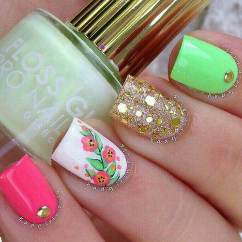 When it comes to spring nails, there really isn’t any specifics needed. Just the pretty look, maybe some floral arrangements and some vibrant colors to get your ready for summer.